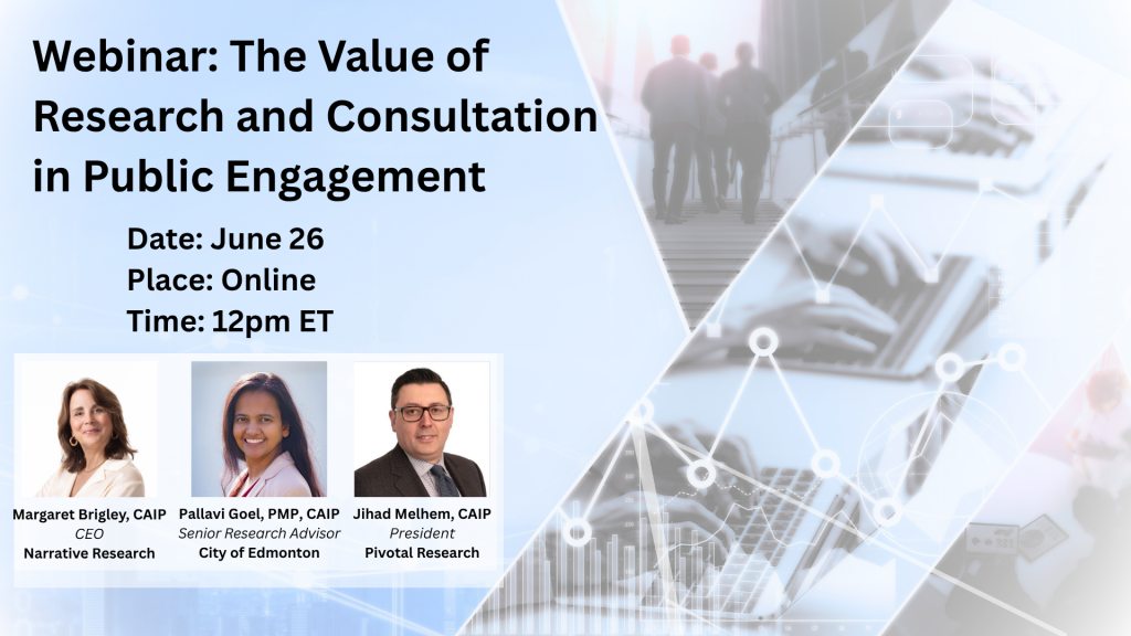 Public opinion research and public consultation are both essential tools to help organizations understand the views of constituents and interest groups as part of a Public Engagement exercise. While public opinion research and consultations can look similar on the surface, there are significant differences in both their purpose and findings. This webinar will look at the strengths and limitations of both and highlight how they can be used together to ensure organizations have the information they need to make the best decisions. Register to watch on demand.