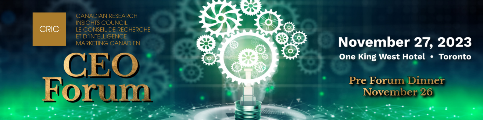 All participants are encouraged to attend the Pre-Forum Dinner that will be held at 6pm on November 26, 2023 at Oliver & Bonacini Café Grill located at 33 Yonge Street at Front