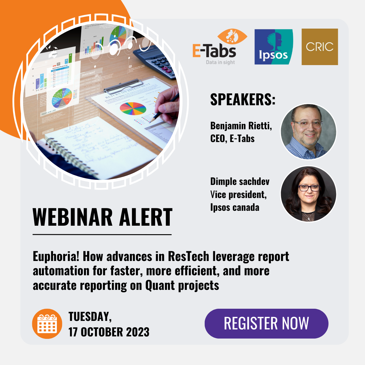 This joint presentation between Ipsos and E-Tabs will include a client case study highlighting the advances and lessons learned in reporting technology that can now even take place in the Cloud and be leveraged by multiple platforms to better their charting experiences – with huge efficiency gains both for continuous and ad-hoc studies.