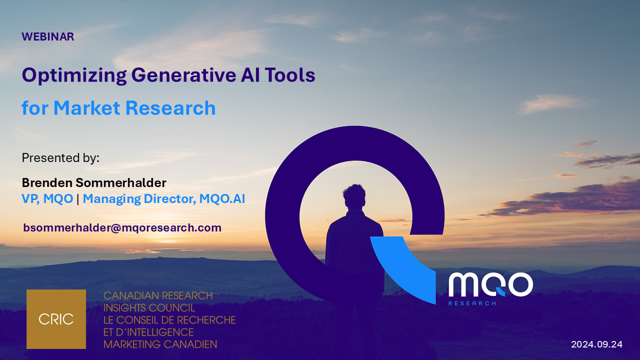 The Canadian Research Insights Council (CRIC) is pleased to present the CRIC AI Showcase. This webinar series features presentations from CRIC agency and research technology member companies, highlighting the most innovative AI tools and services transforming our industry. Each segment lasts 15-20 minutes and will offer insight into the practical applications of AI in research. Attendees will have the opportunity to connect with presenting companies that have compelling solutions. Gain valuable knowledge and explore the potential of AI in the field of research and insights. Register to watch on demand.