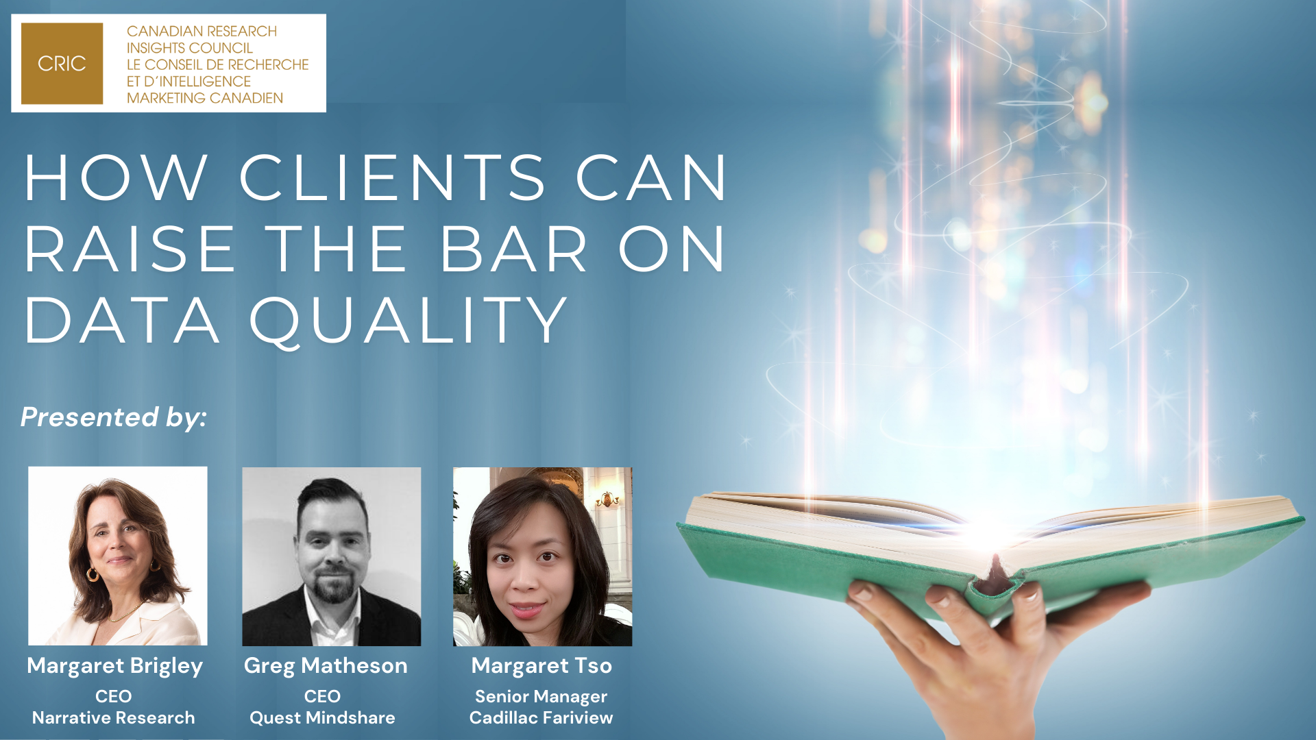 Quality data is crucial for ensuring the insights that businesses and organizations depend on are reliable. As the threat to data quality continues to rise, it is essential that clients, agencies and sample providers are working together to ensure the highest quality data. In this interactive session, Greg Matheson, Margaret Brigley, and Margaret Tso, will review the ongoing and emerging risks to data quality.
